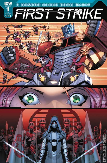 A Hasbro comic book event! As Earth joins the intergalactic community, a massive explosion threatens the peace! A new COBRA-led by the worst villains to ever tangle with G.I. Joe, M.A.S.K., and the Transformers-is invading Cybertron and only Scarlett, Optimus Prime, G.I. Joe and the Autobots can save two worlds!' Bullet points: * The Hasbro comic book event of 2017 is here! * A perfect jumping on point for readers new and old! * An all-new explosive chapter in the Hasbro comic book line! Literally! There are explosions!