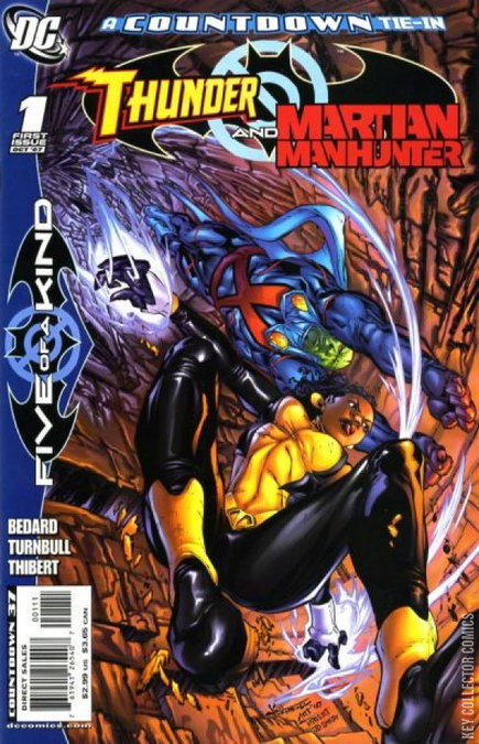 "Five of a Kind, Part 3: Bug-Eyed Monsters" Black Lightning's daughter Thunder and the Martian Manhunter investigate a mystery at the center of the earth--but the mystery only deepens when they find a New God on the run!