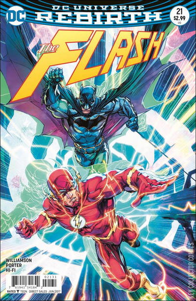 THE BUTTON, PART TWO The cataclysmic events of DC UNIVERSE: REBIRTH #1 continue here! The Dark Knight and The Fastest Man Alive, the two greatest detectives on any world, unite to explore the mystery behind a certain blood-stained smiley button embedded in the Batcave wall. What starts as a simple investigation turns deadly when the secrets of the button prove irresistible to an unwelcome third party—and it’s not who anyone suspects! It’s a mystery woven through time, and the ticking clock starts here! CONTINUED FROM BATMAN #21 / CONTINUED IN BATMAN #22