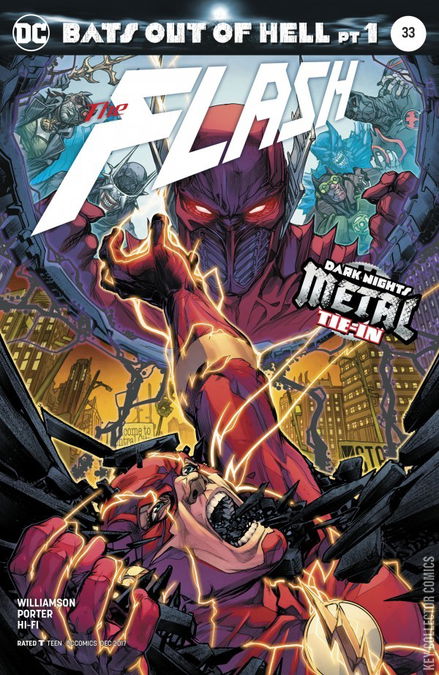 BATS OUT OF HELL, PART ONE The Justice League has scattered around the world to find the only artifacts that can fight back against the invasion of the Dark Multiverse. The League thinks they know how to take back their world, but they are not prepared for who is standing in their way. The Seven Dark Knights of the Dark Multiverse. All the brilliance of Batman, but none of the morals. Barry Allen, the Fastest Man Alive, is the first to get a taste of their plan, as Batman: the Red Death takes him on at the Fortress of Solitude. DARK NIGHTS: METAL TIE-IN