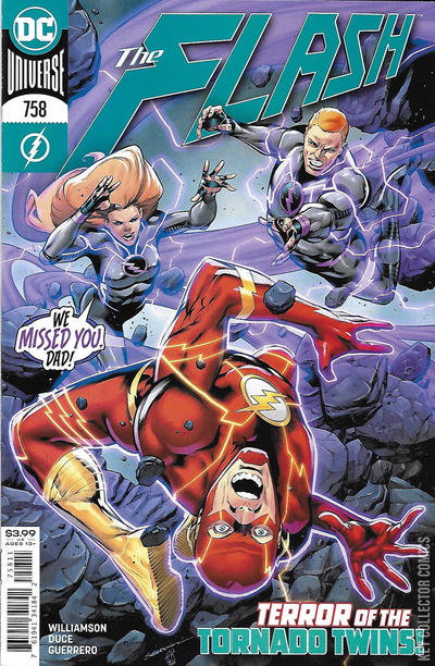 LEGION OF ZOOM, PART TWO Central City is reeling from the recent attack, and Barry Allen lies broken and helpless! To uncover his foes’ next target, the Flash must solve a mystery from his past…but before he can, he’s attacked by the corrupted Tornado Twins—his children from the future!