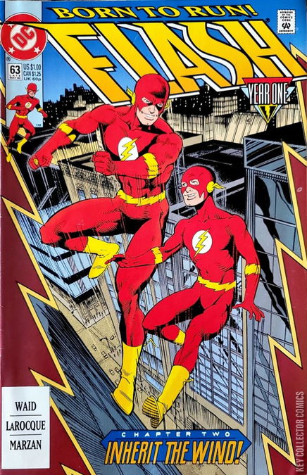 FLASH: YEAR ONE —BORN TO RUN, CHAPTER 2: INHERIT THE WIND The retelling of the origin of Kid Flash continues as Barry Allen and Wally West go on their first adventure together, stopping a gunman in the process. Barry gives Wally a Flash costume.