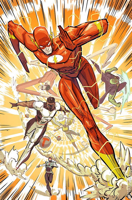 WALLY PEERS INTO THE FUTURE! Flash confronts Heat Wave on the sea floor--and in doing so has a breakthrough about how he can help the most people with his Flashes of Insight! After consulting with Mr. Terrific, Wally begins using the Speed Force--in combination with lightspeed passes throughout the city--to gather more data than he's ever done and begins using it to help people before they get hurt! And best of all: It works. Even peeking just a second into the future lets the Flash give Central City its first day where nothing goes wrong, and not a single accident occurs--and not even an attempted bank robbery by one of his Rogues can stop that! All that's left now is to scale it up...to a level the world has never seen!