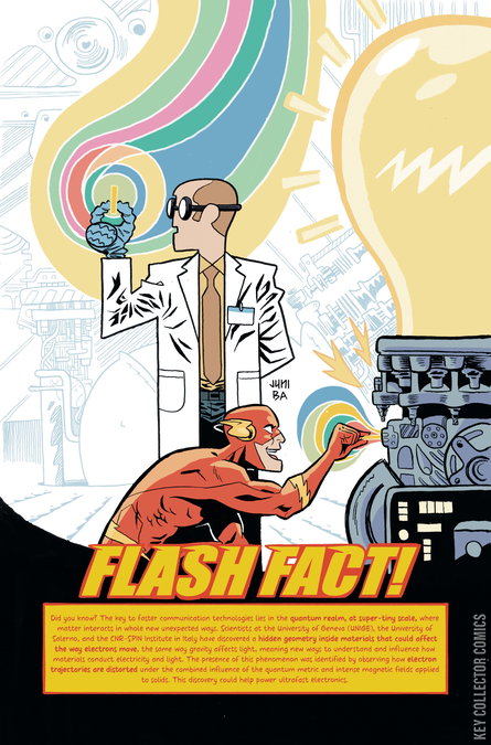 WALLY PEERS INTO THE FUTURE! Flash confronts Heat Wave on the sea floor--and in doing so has a breakthrough about how he can help the most people with his Flashes of Insight! After consulting with Mr. Terrific, Wally begins using the Speed Force--in combination with lightspeed passes throughout the city--to gather more data than he's ever done and begins using it to help people before they get hurt! And best of all: It works. Even peeking just a second into the future lets the Flash give Central City its first day where nothing goes wrong, and not a single accident occurs--and not even an attempted bank robbery by one of his Rogues can stop that! All that's left now is to scale it up...to a level the world has never seen!