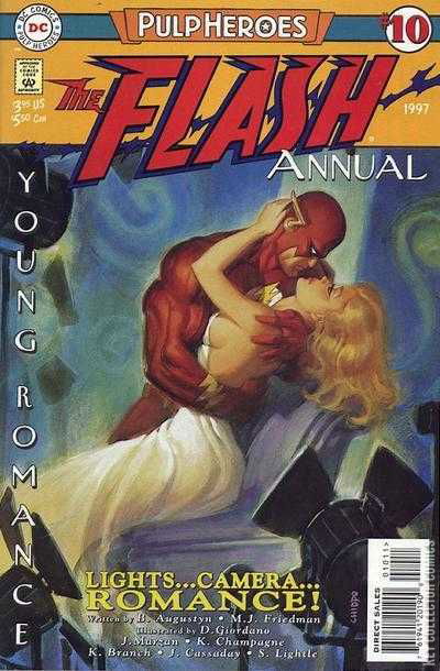 An aspiring starlet is convinced that the Flash is the man of her dreams, and goes to any means necessary to make sure those dreams come true.In this chapter of the "Pulp Heroes" Annuals we have a two part story. The first part deals with the Flash trying to make a movie so he can bring some income and give the profits to a small town. Unfortunately the rainbow Raider and a Femme Fatale bent on marrying the Flash put a damper on things. The second story has the Pied Piper dealing with an old crime buddy who does not like that the Pied Piper gave up his life of crime. This issue was part of the 1997 Pulp Heroes Annuals crossover event.