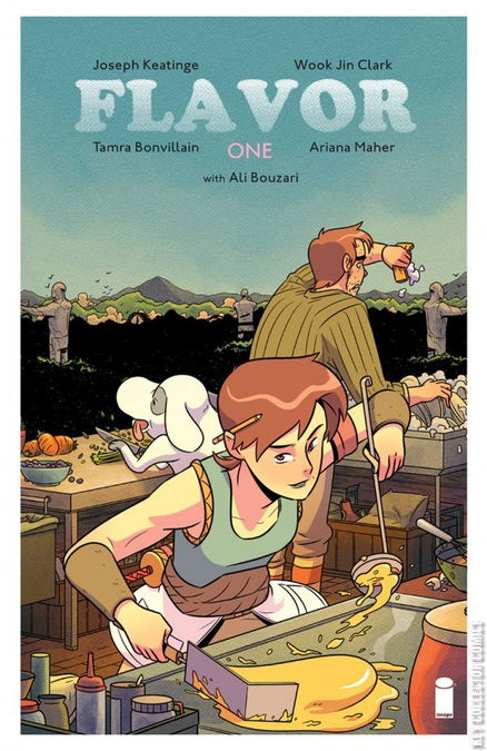 Within a strange walled city, an unlicensed chef discovers a mystery that threatens to end it all. Join JOSEPH KEATINGE (GLORY, SHUTTER) and WOOK JIN CLARK (Adventure Time: The Flip Side) on this culinary epic adventure—FLAVOR—where chefs are the ultimate celebrity and food is the most valued commodity. The high-stakes competition of Hunger Games collides with the lush, MIYAZAKI-esque worldbuilding in this delectable new ongoing series featuring culinary consulting and bonus content by ALI BOUZARI, renowned food scientist and author of the IACP Award-winning cookbook Ingredient: Unveiling the Essential Elements of Food.