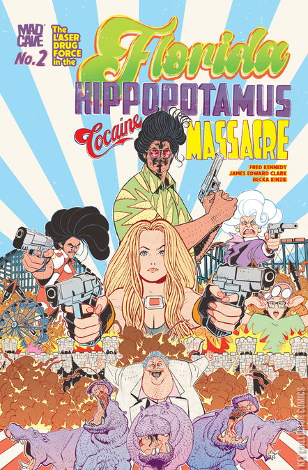 The hippos are LOOSE! Yes, an entire amusement park filled with ravenous hippopotami chomping on families and destroying property values! It’s a good thing Miquel Senecoza and Clarke Nebraska are on the case. Although it’s a shame that Nebraska has Miquel tied to a chair while she beats him with a phone book and reveals her tragic backstory that left her hungry…for justice! So adjust your karate belts, and get ready for more daring do…Florida style!