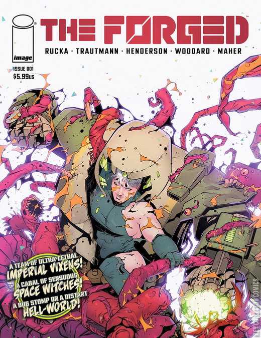 In the 11th Millennium of the rule of the Eternal Empress, a squad of planet-smashing super soldiers find their routine mission to be anything but. These are the Forged. They take no prisoners. Written by GREG RUCKA & ERIC TRAUTMANN and brought to the page by MIKE HENDERSON, embark upon an over-the-top pulp adventure of sex, violence, and sci-fi inspired by Conan, Heavy Metal, and other comics you tried to hide from your parents.