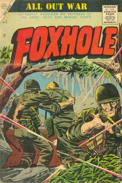 Home / Mainline / Foxhole / Foxhole #7 Mainline Released March 1956 Foxhole #7 Add to Collection Want It Synopsis No synopsis available. Issue 7 of 7 Add to Collection Buy it on eBay Buy on eBay Low $45 Mid $130 High $425 Synopsis No synopsis available. Details Series Foxhole Cover Date March 1956 Pages 36 UPC N/A Cover Price $0.10 Final Order Cutoff N/A Creators No creators listed. Price Guide Log in or subscribe to access detailed graded price information and market insights. Log In Subscribe