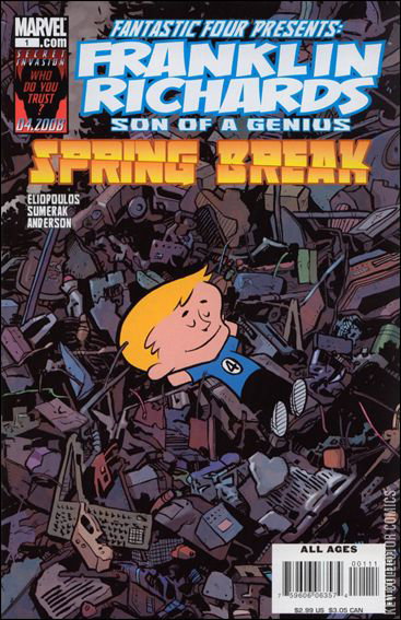 Spring is finally here! The snow is thawing, the days are getting longer, and Franklin Richards is destroying everything in his superhero father's secret lab. (Wait...that last part happens every season!) Franklin Richards comes in like a lion this March in five brand-new tales filled with doohickeys and destruction...and it'll once again be up to his robot pal H.E.R.B.I.E. to handle the spring cleaning after the damage is done! This special one-shot is gonna make the Fantastic Four wish they had gone on a long vacation...