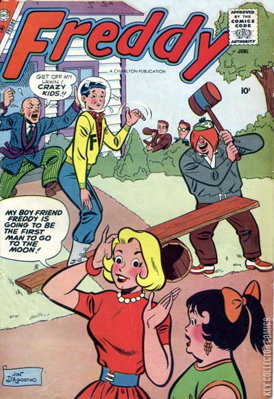 Home / Charlton / Freddy / Freddy #12 Charlton Released June 1958 Freddy #12 Add to Collection Want It Synopsis No synopsis available. Issue 1 of 36 Add to Collection Buy it on eBay Buy on eBay Low $8 Mid $25 High $90 Synopsis No synopsis available. Details Series Freddy Cover Date June 1958 Pages 36 UPC N/A Cover Price $0.10 Final Order Cutoff N/A Creators No creators listed. Price Guide Log in or subscribe to access detailed graded price information and market insights. Log In Subscribe