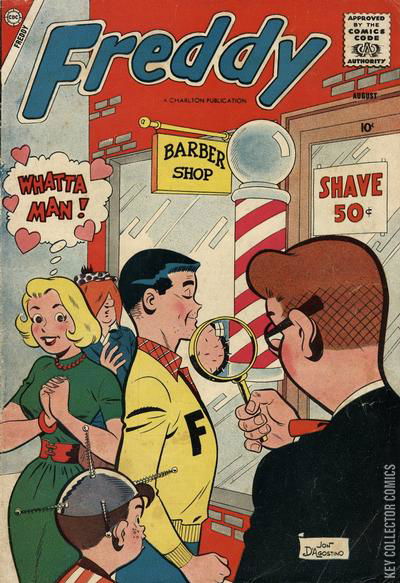Home / Charlton / Freddy / Freddy #13 Charlton Released August 1958 Freddy #13 Add to Collection Want It Synopsis No synopsis available. Issue 2 of 36 Add to Collection Buy it on eBay Buy on eBay Low $8 Mid $25 High $90 Synopsis No synopsis available. Details Series Freddy Cover Date August 1958 Pages 36 UPC N/A Cover Price $0.10 Final Order Cutoff N/A Creators No creators listed. Price Guide Log in or subscribe to access detailed graded price information and market insights. Log In Subscribe