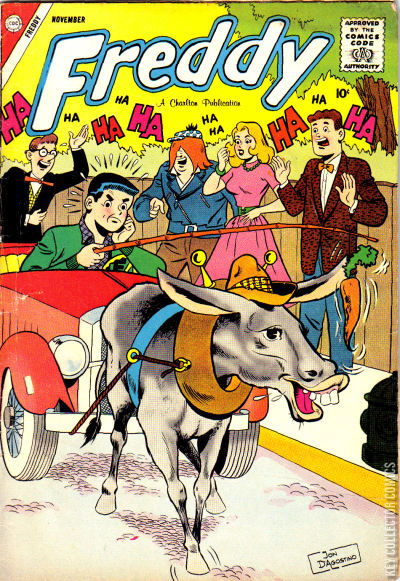 Home / Charlton / Freddy / Freddy #14 Charlton Released November 1958 Freddy #14 Add to Collection Want It Synopsis No synopsis available. Add to Collection Buy it on eBay Buy on eBay Low $8 Mid $25 High $90 Synopsis No synopsis available. Details Series Freddy Cover Date November 1958 Pages 36 UPC N/A Cover Price $0.10 Final Orders Cutoff N/A Creators No creators listed. Price Guide Log in or subscribe to access detailed graded price information and market insights. Log In Subscribe