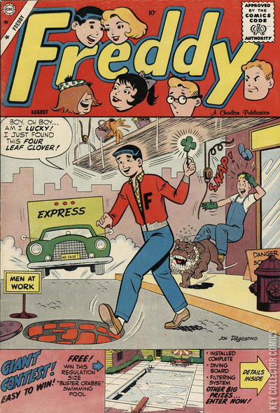 Home / Charlton / Freddy / Freddy #18 Charlton Released August 1959 Freddy #18 Add to Collection Want It Synopsis No synopsis available. Issue 7 of 36 Add to Collection Buy it on eBay Buy on eBay Low $8 Mid $25 High $90 Synopsis No synopsis available. Details Series Freddy Cover Date August 1959 Pages 36 UPC N/A Cover Price $0.10 Final Order Cutoff N/A Creators No creators listed. Price Guide Log in or subscribe to access detailed graded price information and market insights. Log In Subscribe
