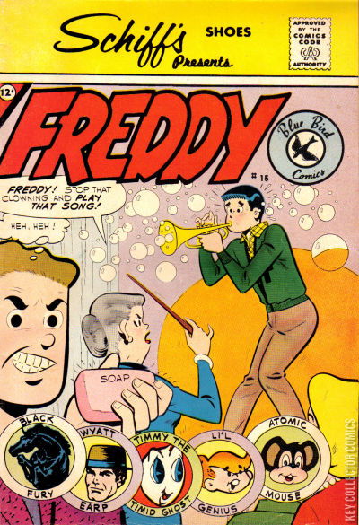Home / Charlton / Freddy / Freddy #15 Charlton Released January 1962 Freddy #15 Add to Collection Want It Synopsis No synopsis available. Issue 14 of 14 Add to Collection Buy it on eBay Buy on eBay Low $5 Mid $18 High $60 Synopsis No synopsis available. Details Series Freddy Cover Date January 1962 Pages 36 UPC N/A Cover Price $0.12 Final Order Cutoff N/A Creators No creators listed. Price Guide Log in or subscribe to access detailed graded price information and market insights. Log In Subscribe