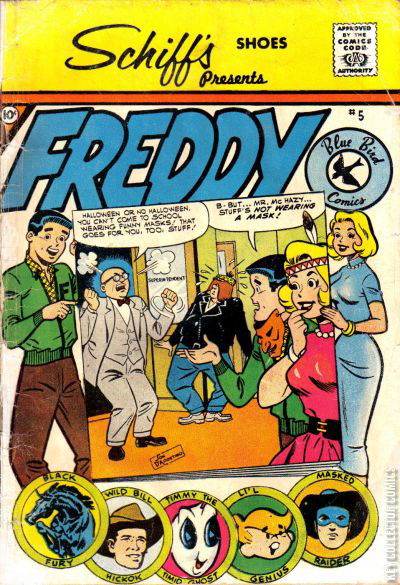 Home / Charlton / Freddy / Freddy #5 Charlton Released January 1959 Freddy #5 Add to Collection Want It Synopsis No synopsis available. Issue 5 of 14 Add to Collection Buy it on eBay Buy on eBay Low $8 Mid $25 High $90 Synopsis No synopsis available. Details Series Freddy Cover Date January 1959 Pages 36 UPC N/A Cover Price $0.10 Final Order Cutoff N/A Creators No creators listed. Price Guide Log in or subscribe to access detailed graded price information and market insights. Log In Subscribe