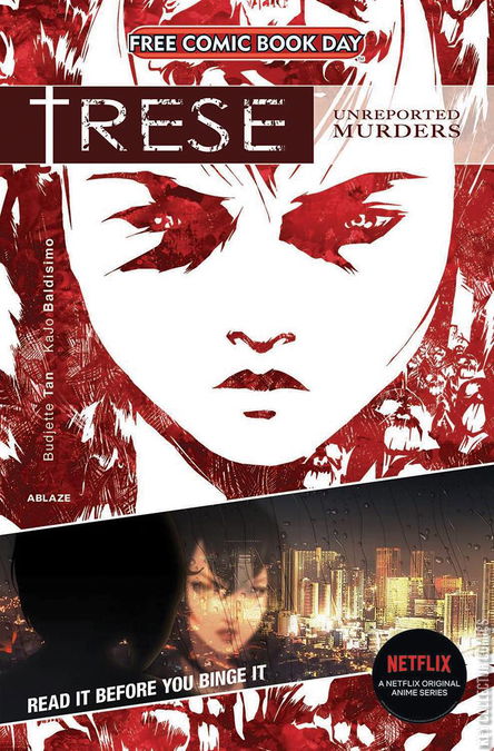 Award-winning comic and soon to be Netflix anime series! When dusk arrives in the city of Manila, that's when you become the most likely prey of the underworld. Kidnappers and thieves will be the least of your worries. Beware the criminals that can't be bound with handcuffs nor harmed with bullets. Beware the ones that crave for your blood, those who hold your heart ransom, and the ones that come to steal your soul. When crime takes a turn for the weird, the police call Alexandra Trese. The TRESE FCBD book features a preview from TRESE Vol 2: Unreported Murders, a section on the forthcoming Netflix TRESE anime series launching this summer (including an interview with Director Jay Oliva), bonus pages with w/ background about the monsters of Philippine myth, as told by TRESE creators Budjette Tan and Kajo Baldisimo, and a teaser on TRESE Vol 3: Mass Murders, coming this Sept from ABLAZE! Reprint Material Rating: Mature