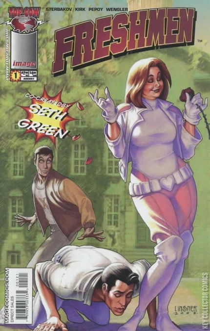 "Introduction to Super Powers 101" pt. 1 of 6. What if a group of college freshmen suddenly got amazing superpowers? What if the powers were based on exactly what they were thinking at the moment? You'd get the Intoxicator, who burps at his foes to make them drunk. Or Quaker, the Amish kid who created earthquakes with his belly. You'd get a kid who can talk to plants‹and is stalked by the plant who loves him. You¹d get a fearless leader who desperately wants superpowers, but is left out of the bonanza. Co-created by Austin Powers and Buffy star Seth Green and written by newcomer Hugh Sterbakov, Freshmen is an uproarious combination of superpowers and collegeŠwith a talking beaver.