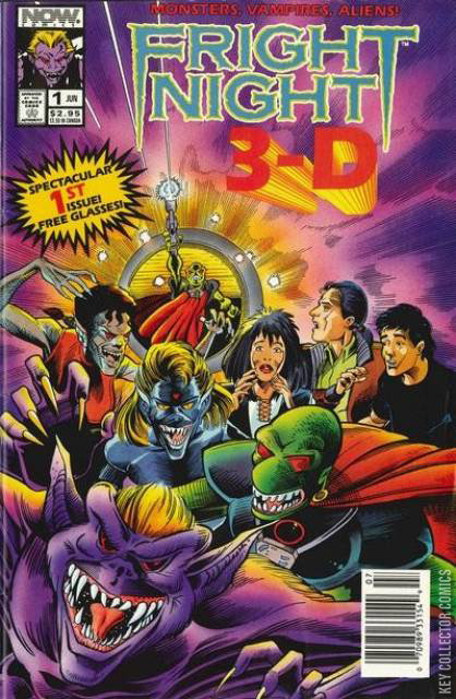 Psychedelic Death. Story by Tony Caputo. Art by Neil Vokes, plus 3-D effects by Bob Staake and Apartment 3-D. Cover by Joe Koziarski and John Stangeland. Reprints Fright Night issues #10-11 with new 3-D effects. Adventures of the monster hunters Charley and Peter, based on the beloved vampire film from 1985. A trippy film Peter Vincent made in the 1960s debuts on TV, and turns out to be strangely compelling viewing; meanwhile, Derek the bartender realizes his new boss is an alien who's planning world domination, and humanitys only chance lies with Evil Ed. May or may not include 3-D glasses. 48 pages, Full Color. Cover price $2.95.