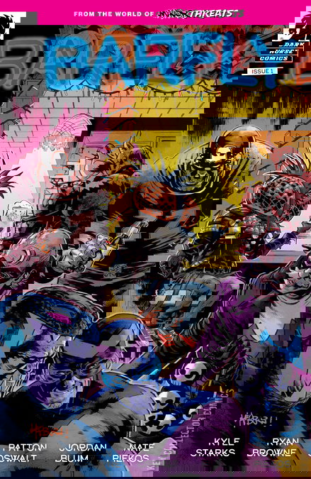 Spinning out of the world of the hit Minor Threats superhero series by Patton Oswalt, Jordan Blum, and Scott Hepburn comes a new tale of costumed underdogs—featuring a low-level henchman without a leader to serve. The Lower Lair bar is home to all sorts of supervillains, lowlifes, and scumbags... but only one of them has to puke digestive fluids onto his food to eat. $#!%eater, the humanoid mutant fly is a loser, a lifelong minion who lives to serve his criminal master. But what happens to a henchman when he no longer has anyone left to hench for? Comic book legends Kyle Starks (Where Monsters Lie) and Ryan Browne (Eight Billion Genies) present the heartwarming, feel good, coming-of-age story about an insect monster-man searching for his identity amongst the criminal underworld of Twilight City. A grimy punk rock odyssey that answers the question "How much $#!% can one lackey eat before he says NO MORE?!"