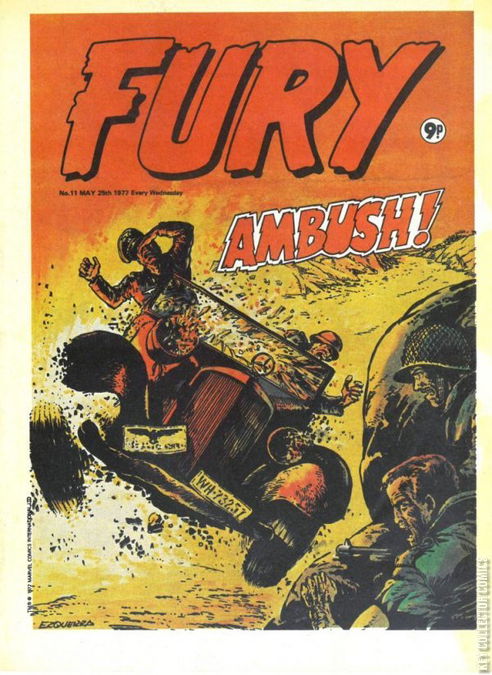 Home / Marvel UK / Fury / Fury #11 Marvel UK Released May 1977 Fury #11 Add to Collection Want It Synopsis No synopsis available. Add to Collection Buy it on eBay Buy on eBay Low $2 Mid $10 High $30 Synopsis No synopsis available. Details Series Fury Cover Date May 1977 Pages 32 UPC N/A Cover Price $0.18 Final Orders Cutoff N/A Creators Cover Artist Carlos Ezquerra Price Guide Log in or subscribe to access detailed graded price information and market insights. Log In Subscribe