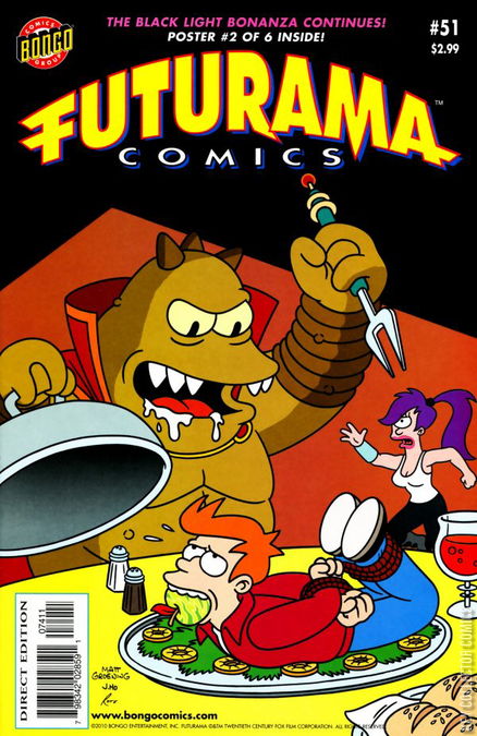 FRY COOK! / THE SEVEN DAY ITCH Bender and Fry battle it out in a kitchen nightmare of their own making to determine who will be top chef at Planet Express; however, they will be forced to make the meal of their lives when some unwelcome dinner guests come to call! Also, Zapp Brannigan and Kif go on a blind date! Plus, this issue features the second of six awesome Futurama posters, suitable for unfolding.