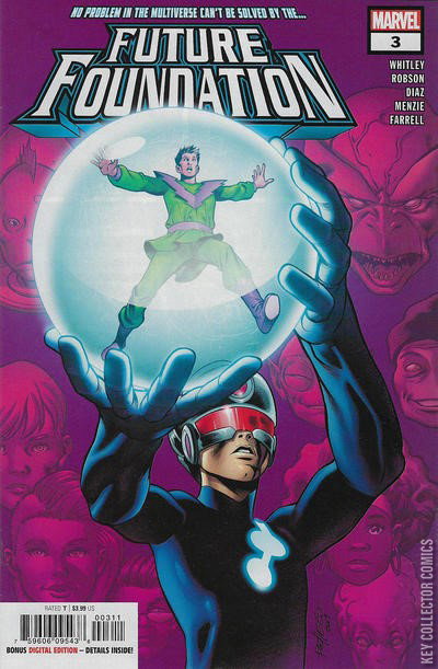 RAINBOWS AND REECE’S PIECES! Owen Reece — a.k.a. Molecule Man — once helped reshape the entire multiverse. Now his body is scattered across the cosmos — and the Future Foundation is out to put him back together. But they’re not the only ones. It’s a race across space as the Maker sets his sights on pieces of Reece! And with a prison security system out to murder them all, the Future Foundation is already behind the mark. But the Foundation has a secret weapon. Find out at last who Julie Power set out to rescue from that intergalactic prison — and why the Maker should be very, very afraid.