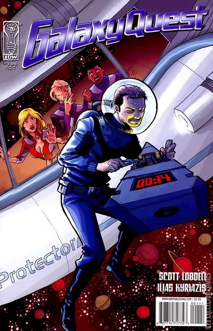 The first-ever Galaxy Quest comic book tale! It's been 20 years since the cast of Galaxy Quest ruled the airwaves! (Alas, the intervening decades involved lots of sci fi conventions and retail store grand openings and precious few acting jobs!) Now, on the eve of the relaunch of America's most beloved science fiction series, Galaxy Quest: The Journey Continues, a world-threatening crisis occurs! Will the Earth survive? Mmmmaybe, if Jason Nesmith and his fellow actors-turned-adventurers have anything to say about it! In the immortal words of his alter ego, Commander Peter Quincy Taggart, "Never give up! Never surrender!"