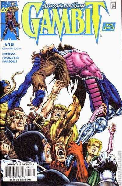 Assassination Game: Part 3 (of 4) X-Cutioner, Batroc, Zaran and Crossbones are still after Gambit, but the ragin' Cajun is taking a breather from deflecting the attempts on his life, by lying under a collapsing building... with his ex-wife! Amongst the wreckage, Remy LeBeau and Belladonna explore the pains of their past, and possibly the hopes of their future! But what does the New Son have in mind for the mutant called Quiet Bill? Plus: An appearance by the high-flying Angel!