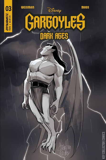 As Angel languishes in chains, Mentor comes to the rescue - but this escape attempt may cause more harm than good. Meanwhile, construction continues on Castle Wyvern, but the noise awakens something that was better left undisturbed! Writer and Gargoyles creator GREG WEISMAN and artist DREW MOSS (Red Sonja) continue their epochal exploration of the Gargoyles' origins in this third issue of Dark Ages, whose 40 pages include a new text story from Weisman and all cardstock covers featuring art by CLAYTON CRAIN, ALAN QUAH, MIRKA ANDOLFO, KENYA DANINO, ERICA HENDERSON, and more! 24 Story + 4 text pages by Weisman ALL COVERS CARDSTOCK