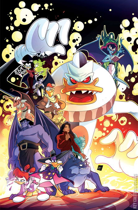 POP GOES THE WORLD! Time has run out for the stalwart champions of New York City and St. Canard, as Demona unleashes the diabolical Paddywhack from his jack-in-the-box confinement and directs him to destroy all of humanity — and all of duckdom as well, just for good measure! Can Goliath and Darkwing hold Paddywhack at bay long enough for reinforcements to arrive in the form of Gosalyn, Launchpad, Morgana, and the rest of Manhattan Clan? And even if they do, will all of their combined strength be enough to overcome Demona’s Quackronomicon-enhanced chaos? Find out in the explosive finale that is Gargoyles/Darkwing Duck #4 — energetically encoded by creative companions GREG WEISMAN, TAD STONES, and CIRO CANGIALOSI, with properly portentous covers provided by STONES, CANGIALOSI, CARLO LAURO, and IVAN BIGARELLA!