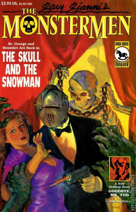 For decades, the skull of the world's most dangerous necromancer has been guarded in a secret Tibetan monastery. Now the whereabouts of the skull have been discovered by creatures who would use it to awaken its former owner. Now Benedict, boneweary after five centuries of battling for the Order of Corpus Monstrum, heads into the Himalayas to take possession of the skull, but not before confronting the monstrous Yeti, while St. George, millionaire film mogul, falls off the side of a mountain. Eisner Award winner Gary Gianni breaks out of the pages of Hellboy with his bizarre adventure team in their first feature presentation. Mike Mignola provides a backup: "Goodbye Mister Tod," in which Hellboy battles a horrible thing that's coming out of a guy's mouth.