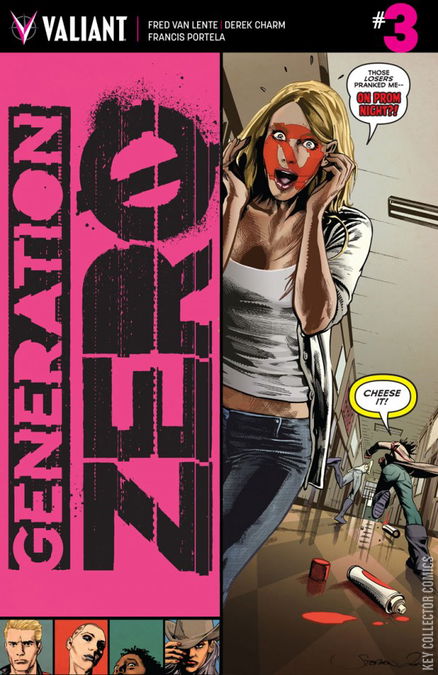 Fast times for Valiant’s volatile teenage strike squad! Generation Zero came to Rook, Michigan to investigate a strange death...and the clues have led them into the halls of an even stranger high school! But only one person knows what really happened to Keisha Sherman’s tragically deceased boyfriend: Rook High’s reigning queen bee! Now, this reformed squad of walking warheads will have to forgo their usual military tactics...and wage a psychic infiltration into the mind of Rook’s most popular teenager! But, as they experience the truth through her eyes, what even darker revelations might spill forth about a town where murder, deception, and deceit lurk behind every picket fence? Out of the pages of HARBINGER WARS, Project Rising Spirit's tempestuous team of super-powered radicals is about to get slayed by the bell – courtesy of New York Times best-selling writer Fred Van Lente (IVAR, TIMEWALKER) and red-hot artists Derek Charm (Jughead) and Francis Portela (FAITH)!
