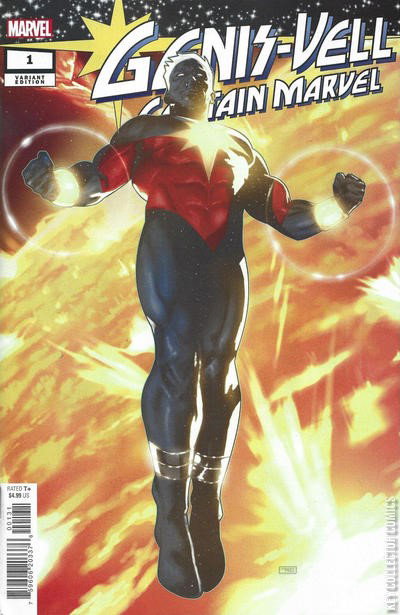 PETER DAVID RETURNS TO GENIS-VELL, SON OF THE ORIGINAL CAPTAIN MARVEL! Both now back in the land of the living, Genis-Vell and Rick Jones are about to come crashing back into each other! Witness Genis-Vell, Captain Marvel return to the pages of his very own series written by legendary scribe Peter David , drawn by artist Juanan Ramírez ! Can Rick Jones save Genis—and himself—before they both fade out of existence? Is Rick's ex-wife, Marlo, the key? Find out when Peter David returns to take Genis-Vell to all-new heights!