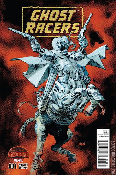FURIOUS RACE FROM HELL IN A BLAZING ARENA OF HORROR!!! Welcome to the scorching-hot track where cursed souls race at the speed of sin, anything and everything goes and the only rule is no rule--it's the spectacle known as the GHOST RACES; the most hellish 'entertainment' known to BATTLEWORLD! 1st place prize: Temporary freedom from the ARENA, but what happens to the unlucky and unholy losers? It's all-out, high-speed warfare among the most bizarre and vicious GHOST RIDERS of the MARVEL UNIVERSE. Expect MANY familiar SKULLS!! SECRET WARS TIE-IN