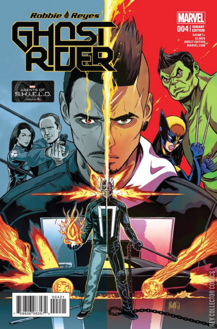 "FOUR ON THE FLOOR" CONTINUES! That purple monster from space is STILL wreaking havoc across the West Coast... Even the combined efforts of the Hulk, Wolverine, and Silk can't stop it! Time for the Ghost Rider to clean up their mess... Guest-starring the AGENTS OF S.H.I.E.L.D.!