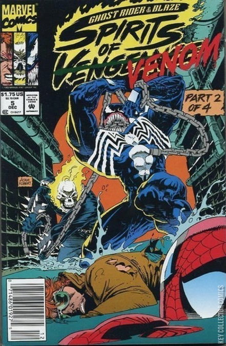 "Chasing Shadows" Part 2 of 4. Guest-starring Spider-Man. Script by Howard Mackie. Pencils by Adam Kubert. Inks by Bill Reinhold. Cover by Adam Kubert. Story continues from Web of Spider-Man 95. The rip-roaring battle among a host of heroes and villains continues below the streets! In the dampness and darkness of the New York sewer system, the swarming Deathspawn gain the upper hand! And carry away the web-slinger, Hobgoblin, Demogoblin, doppelganger, and parish priest! Thus leaving Johnny Blaze, Ghost Rider, and Venom to figure out where the Deathspawn have taken their prey! However, the three anti-heroes are not overly interested in working together! But as the old expression goes…the enemy of my enemy is my friend…and so forth! Can the new trio of teammates find the amazing one and the goblins before it's too late? Story continues in Web of Spider-Man 96. Cameo appearances by Hag, Troll, and Deathwatch. This story continues from Web of Spider-Man (Marvel, 1985 series) #95 and in Web of Spider-Man (Marvel, 1985 series) #96.