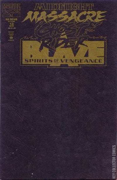 Blaze, Victoria Montesi, Hannibal King, Modred, the Demogoblin, the Werewolf and Morbius have fallen victim to Switchblade, the possessed persona of Blade. Now, the remaining Midnight Sons, Ghost Rider, Frank Drake, Sam Buchanan and Louise Hastings gather to stop him from taking the Darkhold from Dr. Strange's Sanctum Sanctorum. Although Strange's enchantments keep the Ghost Rider out, the demonically powerful Switchblade enters with ease, and soon emerges with the arcane tome. Knowing the Sons must prevent Switchblade from using the book to wipe out all humanity, Ghost Rider wraps his chain around the book as a spell by the Sorcerer Supreme opens a vortex to pull it out of his grasp. A furious battle then erupts between Ghost Rider and Switchblade, a battle that goes from bad to worse for the Ghost Rider as he falls to his foe. Meanwhile, in a private bar called the Nightclub, Seer is knocked back by a tongue of Hellfire, indicating to her that "the Blood" is due to gather soon. As Blade absorbs Ghost Rider's powers, the Penance Stare instills in his mind overwhelming visions of the past and future. Professor Hastings takes the opportunity to grasp the Darkhold and read from it the spell to reverse Blade's actions, in spite of the toll she knows it will eventually take. All of Switchblade's victims and Blade himself find themselves whole again. Modred moves toward the stunned Blade, intending to kill him, but is stopped by Ghost Rider. Modred vanishes, and the various players go their separate ways, under the watchful eyes of the grinning Darkhold Dwarf. Elsewhere, others stir: Seer is unable to recruit her fellow Blood; in Greenland, Lilith makes her plans; and in his lair, Centurious plots his next moves. Note: Blade appeared in the form of Switchblade.