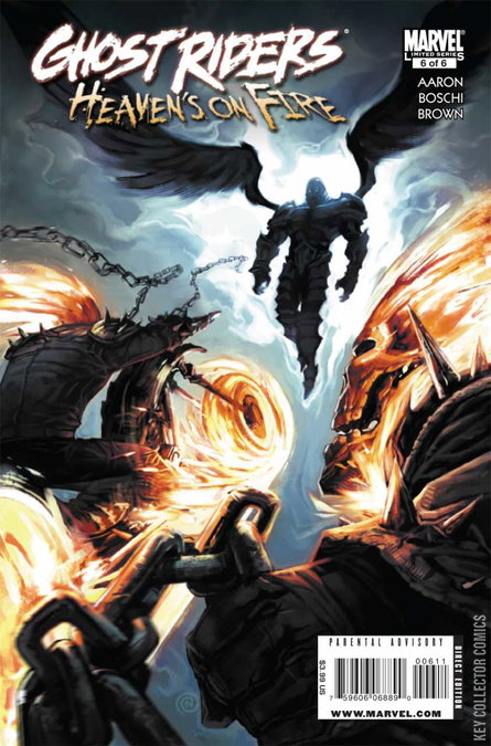 In one corner, we have the Ghost Rider brothers, Johnny Blaze and Danny Ketch. In the other corner is Zadkiel, the renegade angel. And before the battle is through, you can rest assured that blood will flow on the golden streets of heaven.