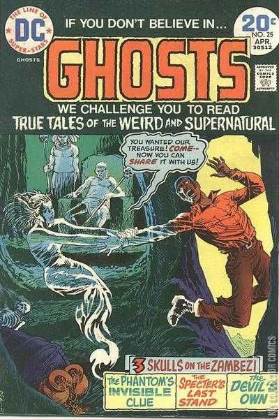 Home / DC / Ghosts / Ghosts #25 DC Released April 1974 Ghosts #25 Add to Collection Want It Synopsis No synopsis available. Issue 25 of 113 Add to Collection Buy it on eBay Buy on eBay Low $5 Mid $15 High $50 Synopsis No synopsis available. Details Series Ghosts Cover Date April 1974 Pages N/A UPC N/A Cover Price N/A Final Order Cutoff N/A Creators Artist Nick Cardy Price Guide Log in or subscribe to access detailed graded price information and market insights. Log In Subscribe