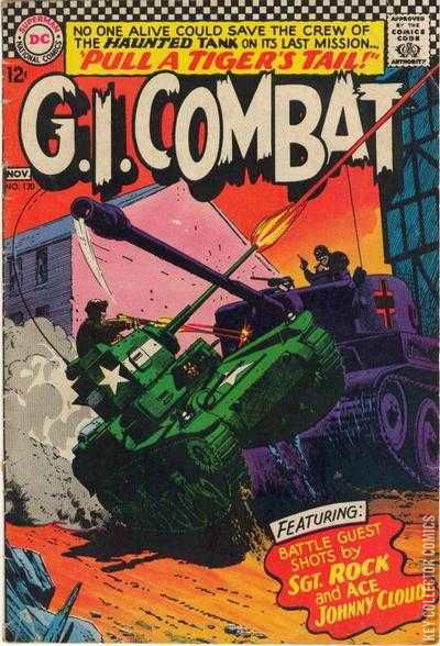 Cover by Russ Heath. Written by Robert Kanigher and Bob Haney. Art by Irv Novick and Jack Abel. No one alive could save the crew of the Haunted Tank on its last mission! Don't miss..."Pull a Tiger's Tail!" by Robert Kanigher and Irv Novick. Featuring battle guest shots by Sgt. Rock and Johnny Cloud. Plus: "A Carrier Has Nine Lives!" by Bob Haney and Jack Abel, reprinted from issue #58.