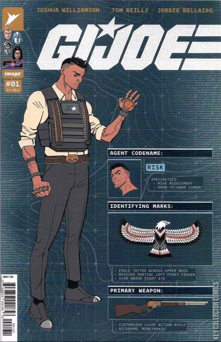 SERIES PREMIERE THE BIGGEST COMIC BOOK LAUNCH OF THE DECADE! Conrad Hauser, Codename DUKE, has assembled a special force known as G.I. Joe to battle the rising power of the mysterious COBRA in the aftermath of the Autobots and Decepticons’ arrival on Earth. But the enigmatic Cobra Commander has unleashed the power of Energon like never before! Featuring many familiar faces and the first appearance of an ALL NEW character, this is the comic that will change everything you think you know about G.I. Joe…and that’s only half the surprises in store from the chart-topping Energon Universe dream team of JOSHUA WILLIAMSON and TOM REILLY!