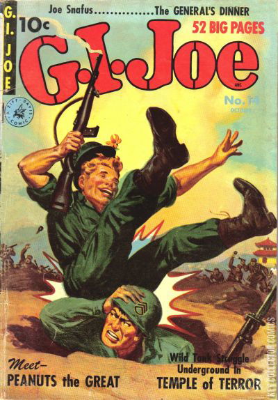 Home / Ziff-Davis / G.I. Joe / G.I. Joe #14 Ziff-Davis Released October 1951 G.I. Joe #14 Add to Collection Want It Synopsis No synopsis available. Issue 5 of 5 Add to Collection Buy it on eBay Buy on eBay Low $25 Mid $75 High $250 Synopsis No synopsis available. Details Series G.I. Joe Cover Date October 1951 Pages 52 UPC N/A Cover Price $0.10 Final Order Cutoff N/A Creators No creators listed. Price Guide Log in or subscribe to access detailed graded price information and market insights. Log In Subscribe