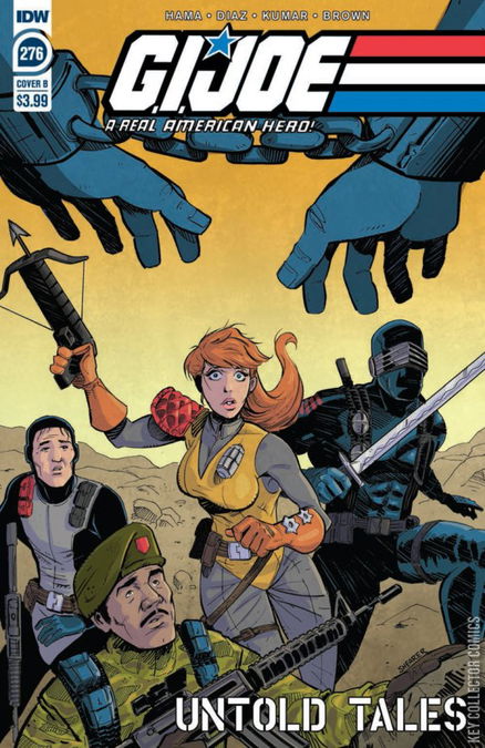 "Untold Tales" Part 1! An all-new arc kicks off as Living Legend Larry Hama reveals never-before-seen adventures of the heroes and villains of the G.I. Joe: A Real American Hero universe! In this issue, Larry joins superstar artist Netho Diaz to tell the tale of Snake Eyes, Scarlett, Stalker, and Torpedo on a desperate mission into Trucial Abysmia to rescue Americans held hostage in a secret prison. But what happens when one of the prisoners turns out to be someone they know?