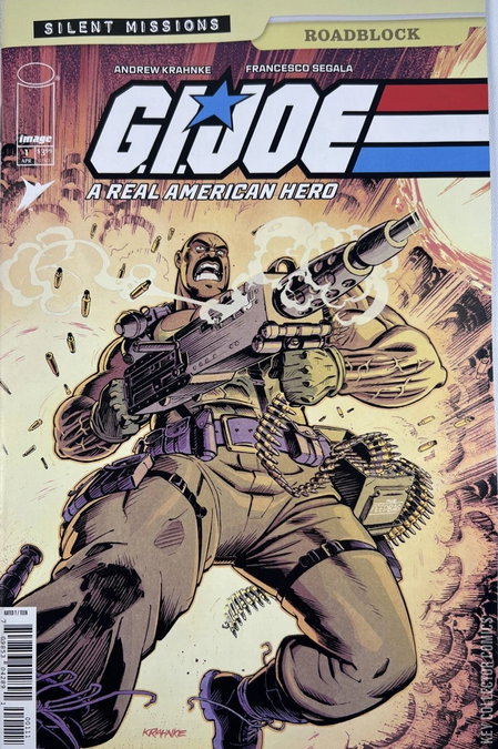 **SUPERSTAR CREATORS PRESENT UNFORGETTABLE ALL NEW G.I. JOE SILENT MISSIONS**The face of comic books changed forever when G.I. JOE: A REAL AMERICAN HERO #21 introduced fans to the “Silent Interlude,” an action-packed story with NO DIALOGUE.Now, in a standalone silent issue from ANDREW KRAHNKE (BLOODRIK), Roadblock pits his .50 cal machine gun against a Cobra convoy led by the high-flying Wild Weasel.