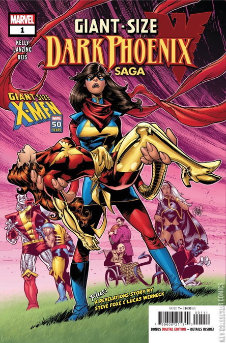 The past isn't set in stone. Kamala Khan is locked in a battle through time against an unstable and unleashed Legion - and she's gone from the frying pan into the Phoenix fire. As the history we know is destroyed in front of her eyes, the new mutant must team up with Jean Grey in her darkest hour... and master her dangerous new mutant power! X-Hivemind Lanzing and Kelly team with superstar Rod Reis for a cosmic, emotional story that turns history upside down. PLUS: A Revelations backup story that reveals the hidden secret that binds Scott Summer and Jean Grey together, as written by Steve Foxe and drawn by Lucas Werneck !