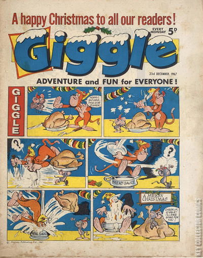 Home / IPC Magazines / Giggle / Giggle #23 December 1967 IPC Magazines Released {{ issue.publishedDate|to_date|date:'F Y' }} Giggle #23 December 1967 Add to Collection Want It Synopsis No synopsis available. Add to Collection Buy it on eBay Buy on eBay Low $5 Mid {{ issue.priceMedium | price }} High $50 Synopsis No synopsis available. Details Series Giggle Cover Date December 1967 Pages N/A UPC N/A Cover Price N/A Final Order Cutoff N/A Creators No creators listed. Price Guide Log in or subscribe to access detailed graded price information and market insights. Log In Subscribe