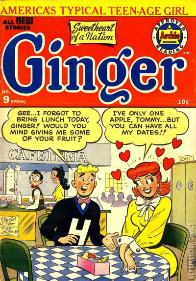 Home / Archie / Ginger / Ginger #9 Archie Released April 1954 Ginger #9 Add to Collection Want It Synopsis No synopsis available. Issue 9 of 10 Add to Collection Buy it on eBay Buy on eBay Low $70 Mid $215 High $720 Synopsis No synopsis available. Details Series Ginger Cover Date April 1954 Pages 36 UPC N/A Cover Price $0.10 Final Order Cutoff N/A Creators No creators listed. Price Guide Log in or subscribe to access detailed graded price information and market insights. Log In Subscribe