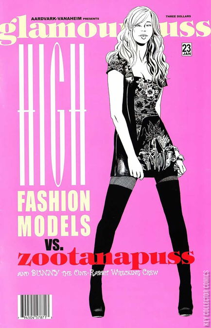 It's the knock-down, drag-out battle to the death you've been waiting for! High Fashion models versus Zootanapuss & Bunny, The One Rabbit Wrecking Crew! Only one faction will survive and the other will be exiled forever from the pages of glamourous! Subtitled "Crisis on Infinite Aardvark-Vanaheims," you won't want to miss a minute of the action in this multi-part thriller which will change the shape of the Aardvark-Vanaheim Universe for all time (or at least until sales are, once again, in the toilet) - it's like the classic two-part Hulk versus Thing only better because all the action takes place in smartly tailored clothing and features a really cute bunny! The history of Photorealism in Comics section continues with the events of September 6, 1956.