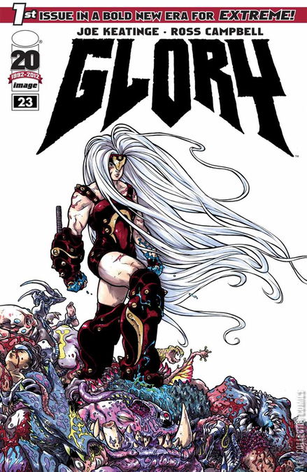 Once and Future, Part 1. Extreme's Original Warrior Goddess returns! After missing for almost a decade, Glory's whereabouts are uncovered by a lone reporter, but the globe-spanning conspiracy keeping her hidden from humanity could make her return more dangerous than anyone ever anticipated! This first issue of an brand-new saga written by Eisner & Harvey-award winner JOE KEATINGE and illustrated by Wet Moon and Shadoweyes creator ROSS CAMPBELL sets up Glory's future by expanding on her past in a way promising to shock long-time fans and excite all-new readers!